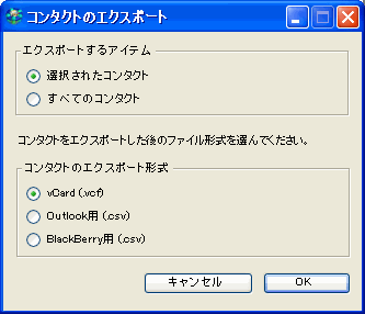[コンタクト]フォルダに登録されているすべてのコンタクトをエクスポートします。 |